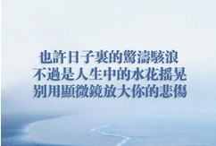 看到昔日好友发了一篇日志《咎由自取》他说他是一个悲观者,感觉社会抛弃了他,脾气、性格在6年的时间里变化很大,很难适应这个社会。人生其实就是不断犯错的过程,在这个过程中不断的犯错,不断的吸取教训,不断的成长。也许日子里的惊涛骇浪,不过是人生中的水花摇晃,别用显微镜放大你的悲伤。